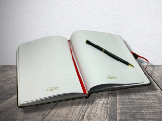 Gestaltung und Maßanfertigung kundenspezifischer Notebooks für eine Schweizer Schokoladenmarke. (Auflage: 10.000 Stück)